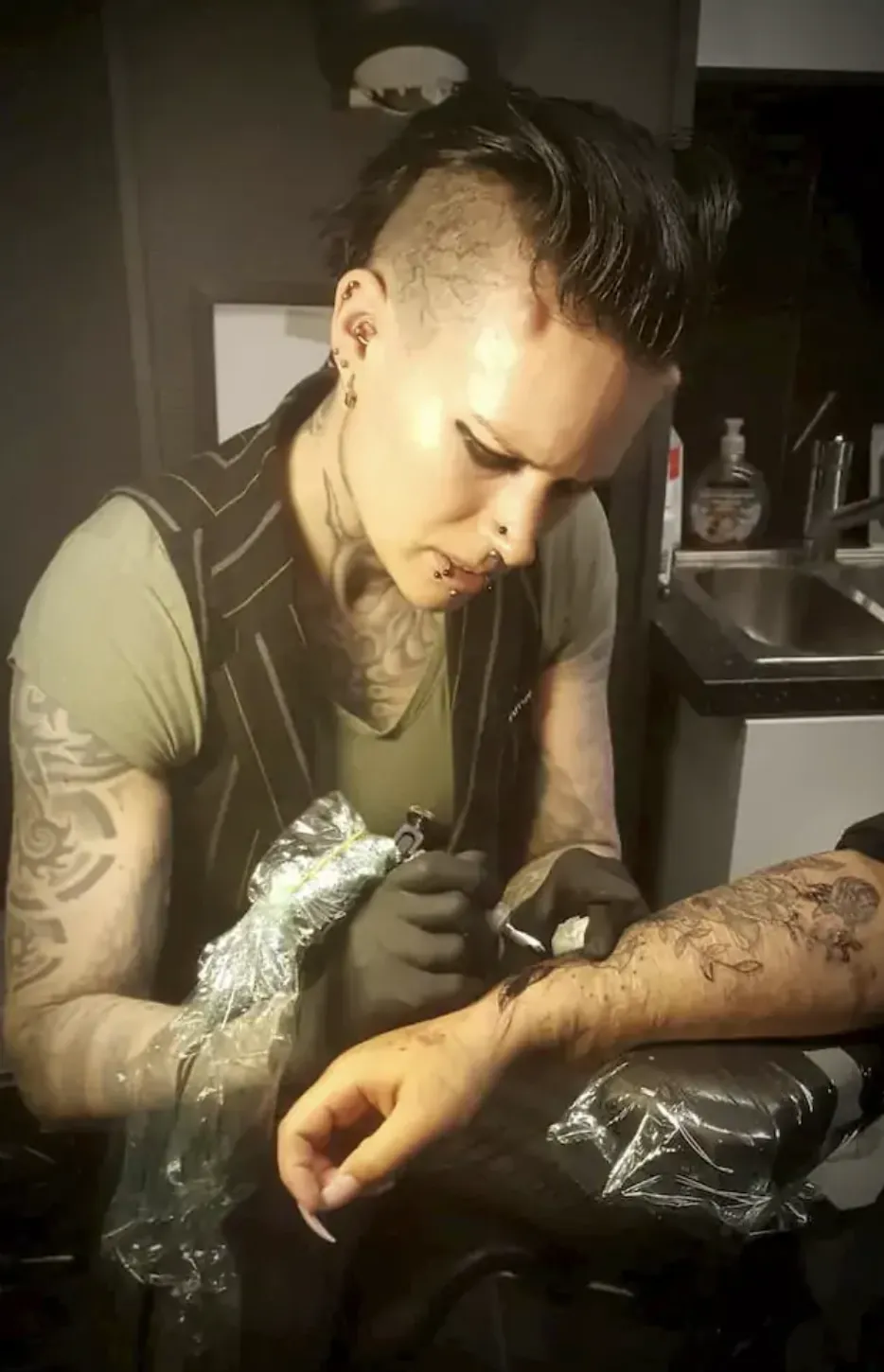 Tidigt drogs jag till det visuella språket, bland annat. Jag har tecknat så länge jag kan minnas. Att kunna uttrycka sig med olika konstnärliga medel är fantastiskt frigörande och ofta även terapeutiskt. Konsten har alltid varit ett brinnande intresse för mig i alla de former, så att ta steget från att vara konstnär med papper till att bli tatuerare och piercare, har inte känts särskilt stort.